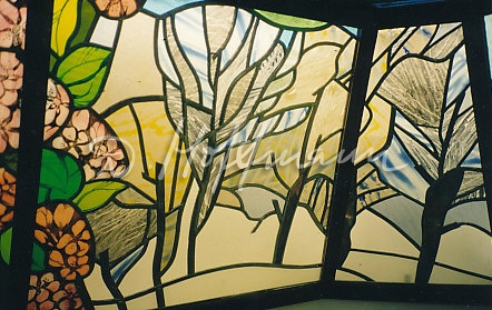 "Papavers" in "Lukoil" restaurant, Moscow 1997"Papavers", fragmentCeiling panel, restaurant in Saint Petersburg 2002Corridor windows, Pitäjänmäki school in HelsinkiPitäjänmäki School in Helsinki, fragment