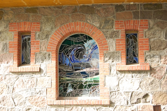 «Распятие», подробноЦерковный дом НиссиОкно «Сотворение мира» в приходском доме НиссиОкно в приходском доме НиссиЧасть окна, Мария с младенцем Иисусом