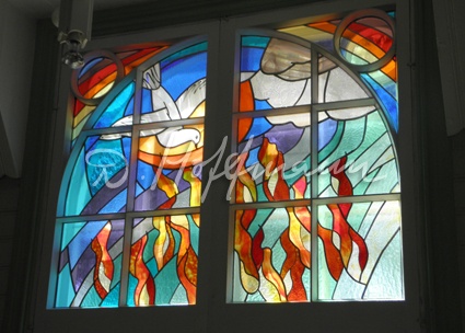 Заалтарное окно в церкви Сятого ДухаЗаалтарное южное окно в церкви Сятого ДухаОкно Иса́ия в церкви Сятого ДухаОкно Иса́ия, фрагментОкно Авраама в церкви Сятого Духа