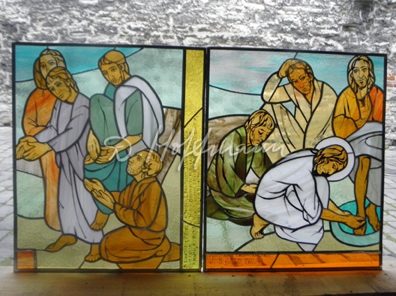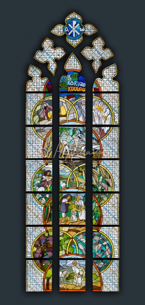 Окно "Деяния Иисуса Христа" в церкви Сятого Духа, 2015 (фото: Мати Мыттус)) Окно "Деяния Иисуса Христа", фрагментАрхаичная окно коридора в церкви Сятого Духа, 2016Окно "Притчи Иисуса Христа" в церкви Сятого Духа, 2016Окно "Притчи Иисуса Христа", фрагмент
